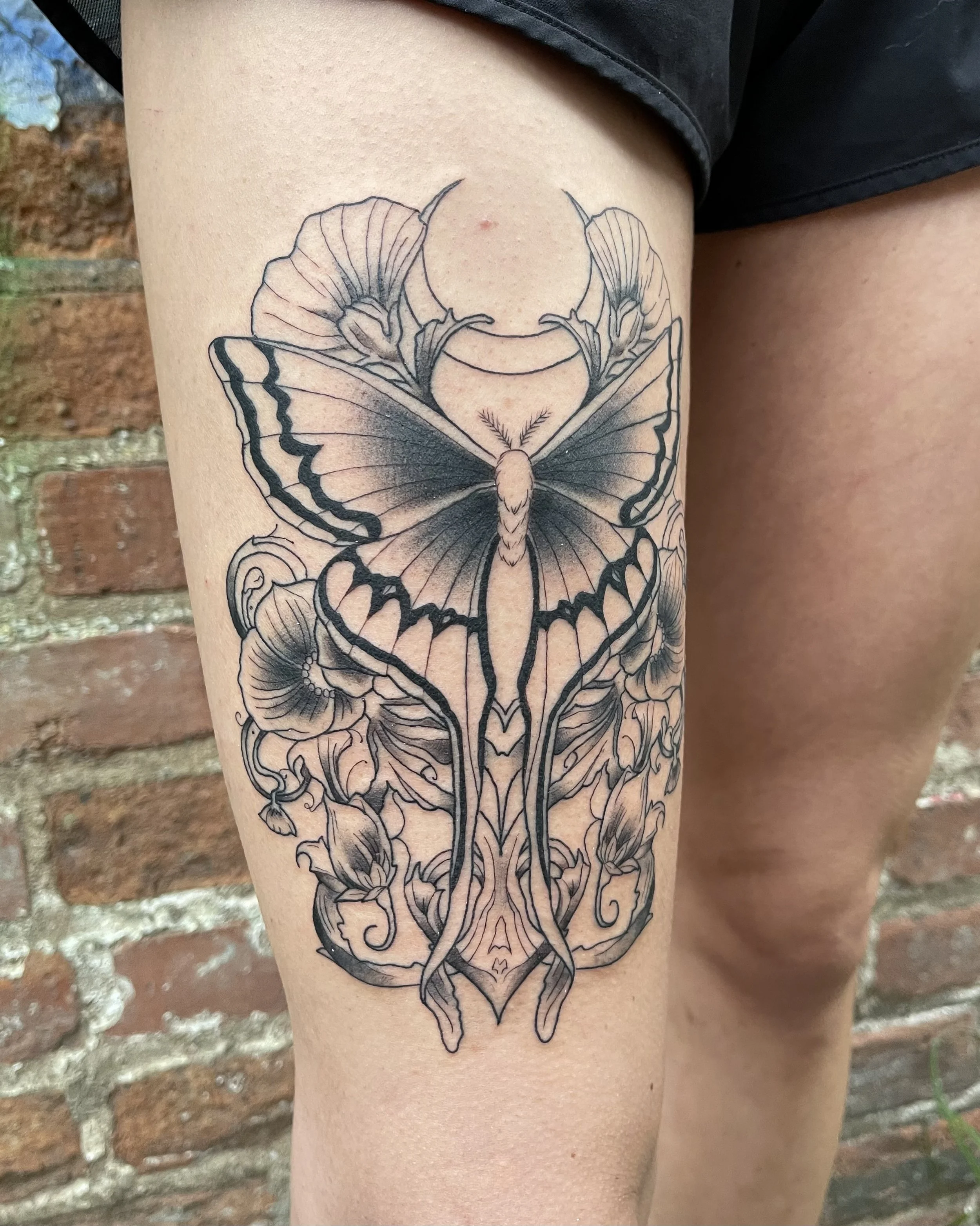 "I cannot recommend Melanie enough. Her design was beautiful and captured all the elements I wanted. She spent time ensuring it was placed in the best spot, taking into account how the skin and tattoo would stretch move with varying movements. She worked efficiently, but made sure to take the time to ensure the tattoo was done meticulously - she even stayed late so we could finish it in one sitting. I couldn’t be happier with the end result!"